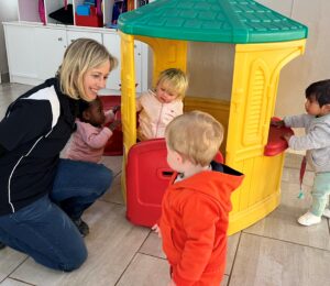 Our Centre is divided into 4 different areas where the babies rotate during the day to ensure stimulation in every area of learning. Our Centre includes a large playground, an outdoor messy play area, a classroom designated for art activities and eating, as well as a spacious indoor area for babies to explore and play. We also have a cot room for our youngest babies to have a peaceful sleep.